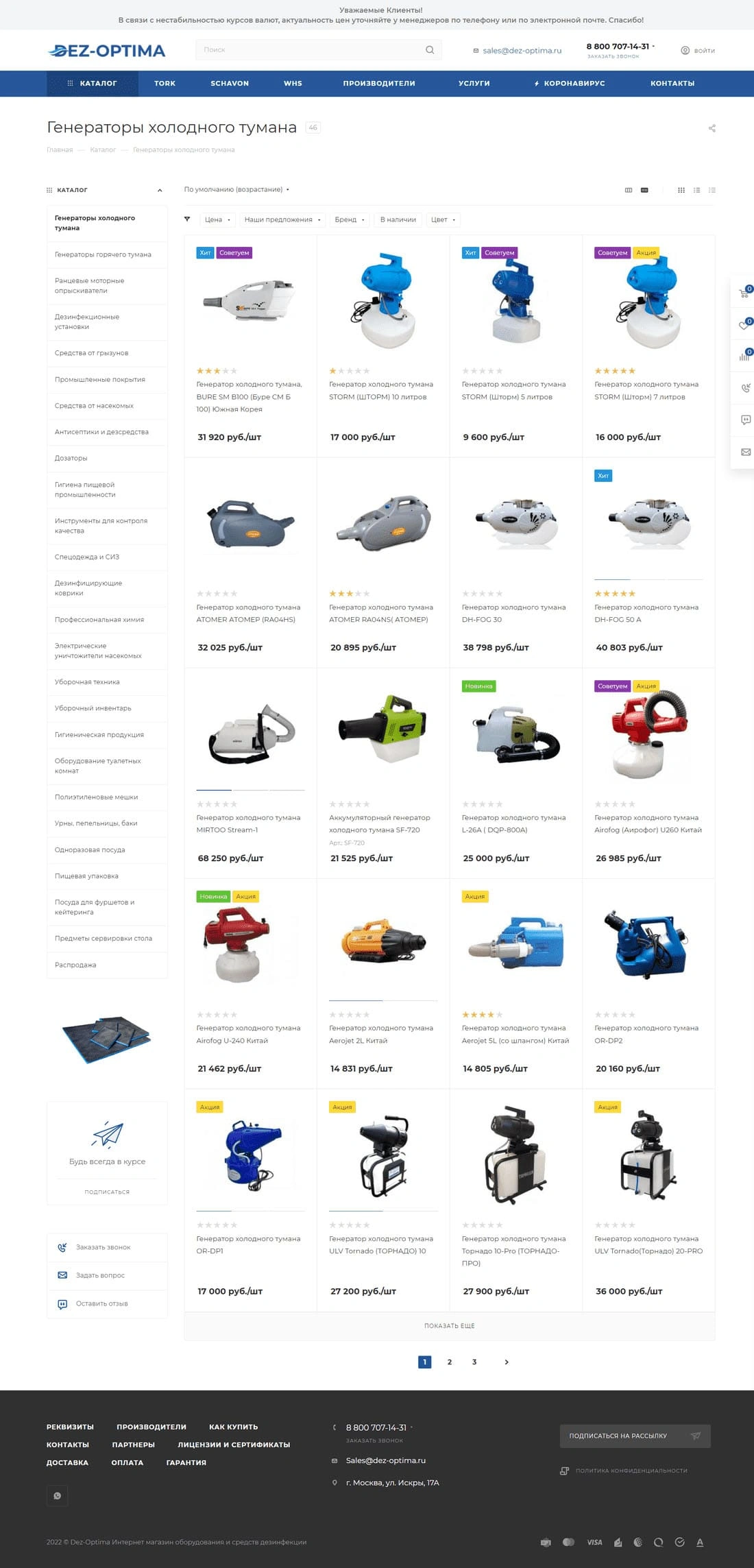 Проанализировали нишу магазинов оборудования, средств дезинфекции. Собрали семантическое ядро, проработали структуру сайта.