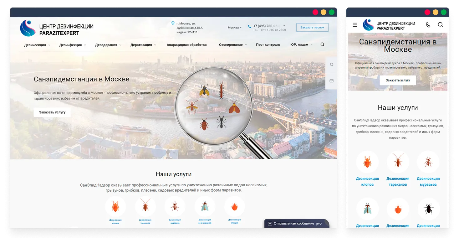 Компания "Паразит Эксперт" оказывает профессиональные услуги по уничтожению различных видов насекомых, грызунов, грибков, плесени, садовых вредителей и иных форм паразитов.