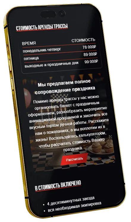 Основной задачей было переработать устаревший дизайн сайта и улучшить пользовательский опыт с учётом специфики развлекательного бизнеса, сделав интерфейс более современным, динамичным и вовлекающим. Также важно было реализовать адаптивную верстку для корректной работы сайта на всех устройствах, с особым вниманием к мобильной версии.