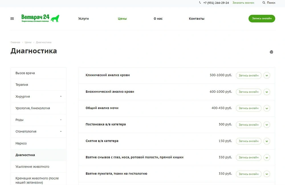 • Сайт для ветклиники